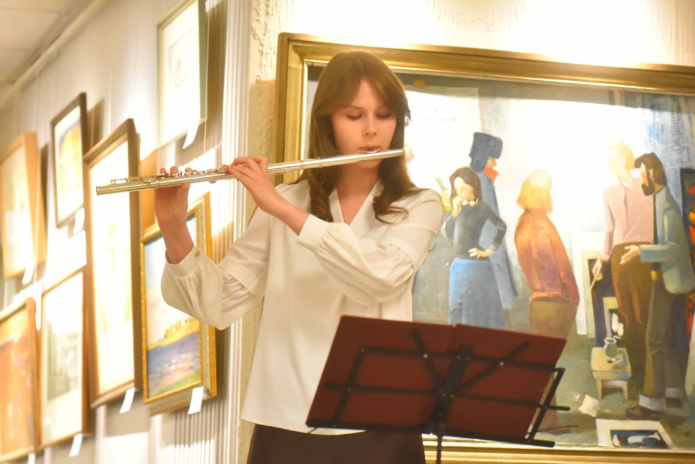 С музыкальными подарками от нашей школы выступили учащиеся духовых инструментов Мария Попова (флейта) и Валерий Сморгон (саксофон).